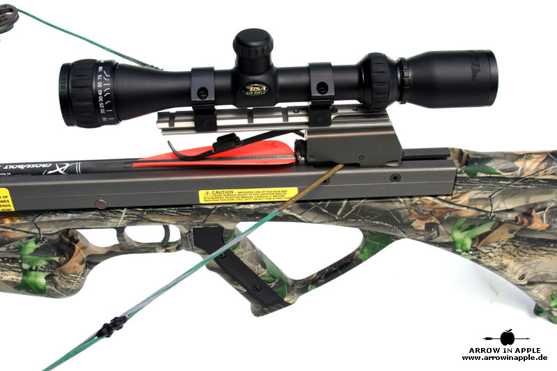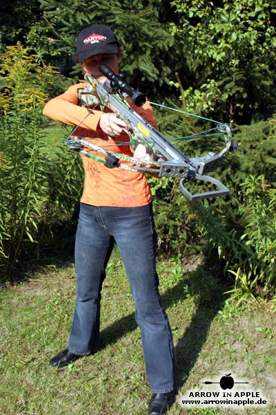 Ein komplettes Dämpfungssystem an den Wurfarmen, der Sehne und dem Pfeilniederhalter macht die Stinger zu einer der leisesten Armbrüste. Die Armbrust Stinger besitzt zwar einen 1,5 Zoll kürzeren Auszug als die Impact, liegt aber nach dieser mit der Pfeilenergie vor allen anderen Armbrüsten auf dem Markt. Es ist immer wieder zu erwähnen, dass die Gründe dafür bei den schweren Pfeilen und der hohen Pfeilgeschwindigkeit zu finden sind. Mit der Stinger wurde eine Pfeilgeschwindigkeit von 330 fps mit einem 480 grain (31,00g) Pfeil gemessen. Das sind rund 101,00 m/s oder 362,10 km/h. |