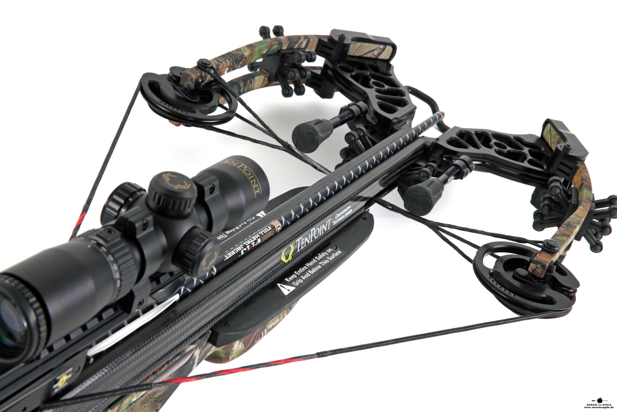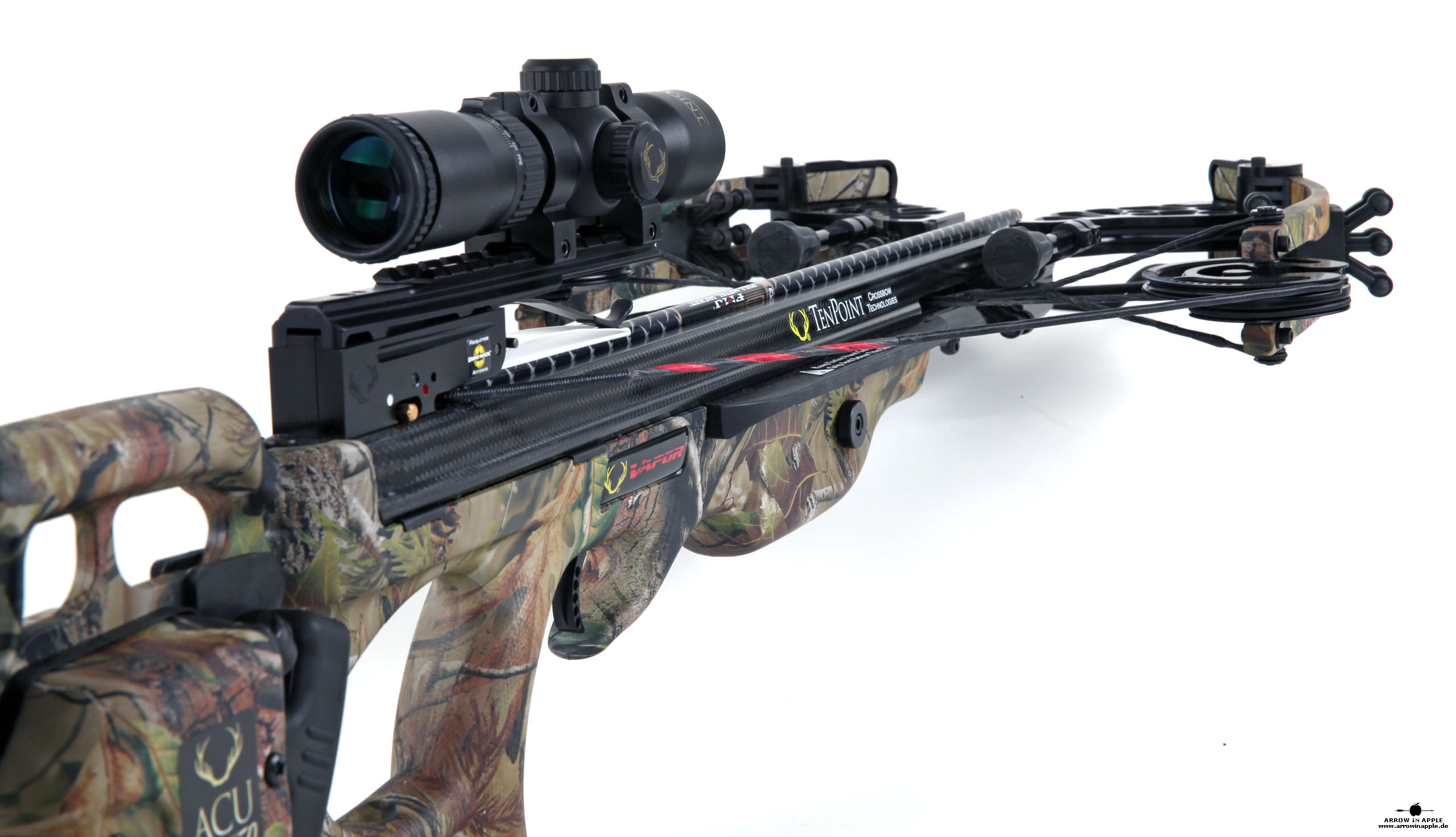 -Europameister 3D- Mit einer TenPoint Vapor wurde 2017 im Attergau / Österreich die Armbrust 3D Europameisterschaft der Männer gewonnen. Die TenPoint Vapor im Komplettpaket ist neben der ehemaligen Phantom CLS, die mit am aufwendigsten hergestellte Armbrust aus dem TenPoint Sortiment. Ebenso wie dier CLS Reihe, ist die Vapor in ihrer Präzision, Funktionalität und Verarbeitung einmalig und zeitlos. Sie besitzt alle 3 wichtigen Sicherungen, die TenPoint entwickelt hat. Die automatische Ladesicherung, die aktive Trockenschusssicherung und die Stützhandsicherung gegen Fingerverletzungen. Der Riser (Bogenmittelteil) ist aus einem 10 Kg Stück Flugzeug Aluminium gefräst und ist so geformt, dass die Wurfarmpaare im gespannten Zusatand fast parallel liegen und damit der Prellschlag so klein wie möglich gehalten wurde. Der Abzug ist leicht und angenehm. Wie ja mittlerweile jeder weiß, sagen Zuggewichte bei modernen Armbrüsten nicht direkt etwas über die Leistung aus. Deshalb sind nur 165 Lbs Zuggewicht bequem zu laden aber sie beschleunigen die Armbrust bei einem 15 Zoll langen Auszug auf über 360 fps mit "normalgewichtigen" 27,3 g Pfeilen. Beim Minimal Pfeil 375 grain sind es sogar 373fps. Diese moderne, schnelle und in ihrer Klasse leichteste Armbrust - die die Firma TenPoint je gebaut hat, ist seit 2013 erfolgreich auf dem Markt. Die Vapor wird mit 2 unterschiedlichen Zielfernrohren (Rangemaster oder AIA FRS 101) in je einem Komplettpaket angeboten, d.h. von Köcher, eingebauter Spannhilfe ACU Draw 50 (ACU Draw-Kurbelspannhilfe auf Wunsch gegen Aufpreis) 3-6 Pfeile, 3 Sicherungen, Tasche, 2 x Dämpfungssysteme usw. Die Vapor ist schmal, schnell, präzise und mit 3,01 kg so leicht wie die super kompakte Armbrust Stealth FX4 (TenPoint). Dafür aber mit einer Pfeilgeschwindigkeit von knapp 400km/h. Sie befördert wegen des längeren Auszuges 22 Zoll Carbonpfeile V22 mit Omninocks oder besser die Black Eagle Executioner .001, 22 Zoll mit Omninocks. Das Sehnen und Kabelsystem ist vom Premiumhersteller Viper X. Das von uns empfohlene AIA FRS 101 kann Entfernungen bis 170m bewältigen. Das Zielfernrohr ist bestens für den 3D Sport oder auch die Jagd gerüstet und darüber hinaus auch für das Targetschiessen mit Entfernungen weit über 100m hervorragend geeignet. |