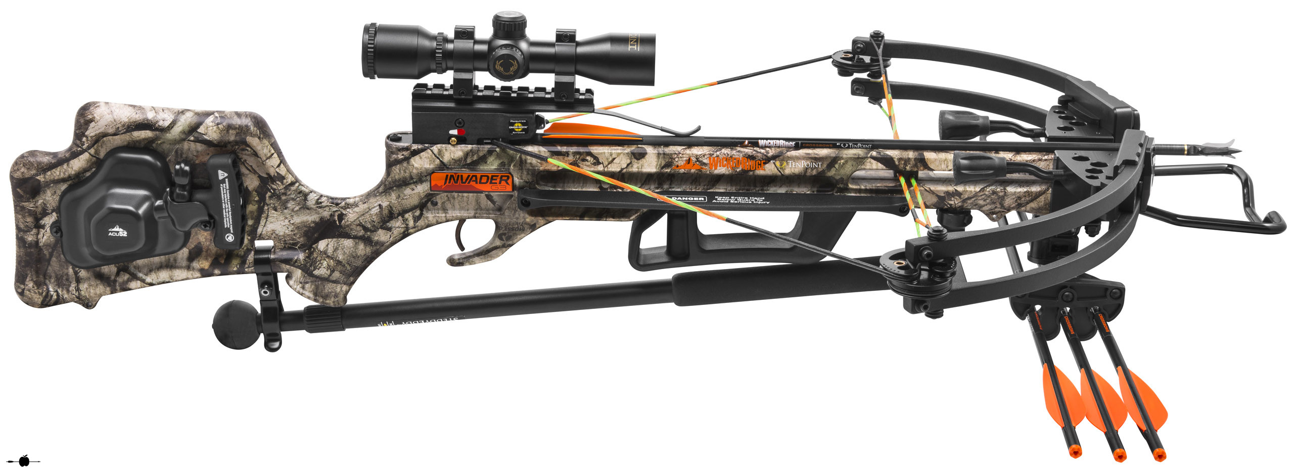 Die Compoundarmbrust Wicked Ridge "Invader G3" löst die alte Invader HL (bis 2014) ab. Sie hat "nur" ein Zuggewicht von 165lbs ist aber mit einem neuen Bogensystem bzw. Wurfarmen ausgerüstet worden. Der verlängerte Auszug auf 13,5 Zoll bringt die G3 mit der kompakten Bauweise die Pfeile auf 330 fps bzw. 100m/s. Zur Sicherheit ist sie mit einem neuen Stütz - Handschutz ausgerüstet. Dieser kann gleichzeitig auch als Transportgriff benutzt werden.