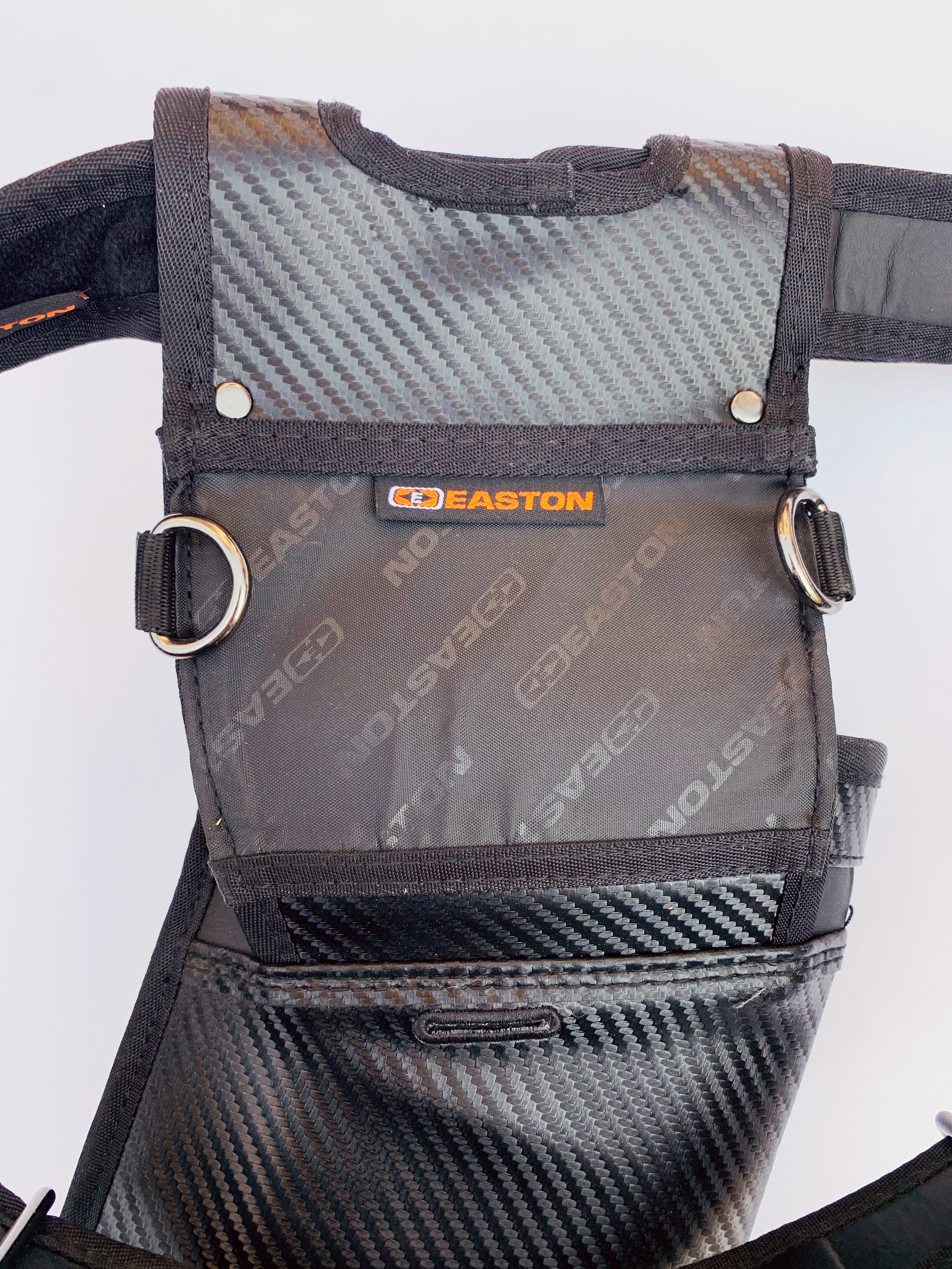Easton Elite Field Quiver / Gürtelköcher inkl. Gürtel für Linkshänder in schwarz/carbon. Stufenlos verstellbarer, aber dennoch robuster, luftgefüllter Köchergurt mit Schnellverschluss.Halbsteifer, nach hinten gerichteter, formgepresster Pfeilkörper macht separate Pfeilrohre überflüssig. Vliesgefüttertes Innenleben und abnehmbare Pfeilteiler für eine geräuscharme und individuelle Pfeilverwaltung. Integrierter quadratischer Bogenschlitz und zwei Befestigungsringe für Zubehör.