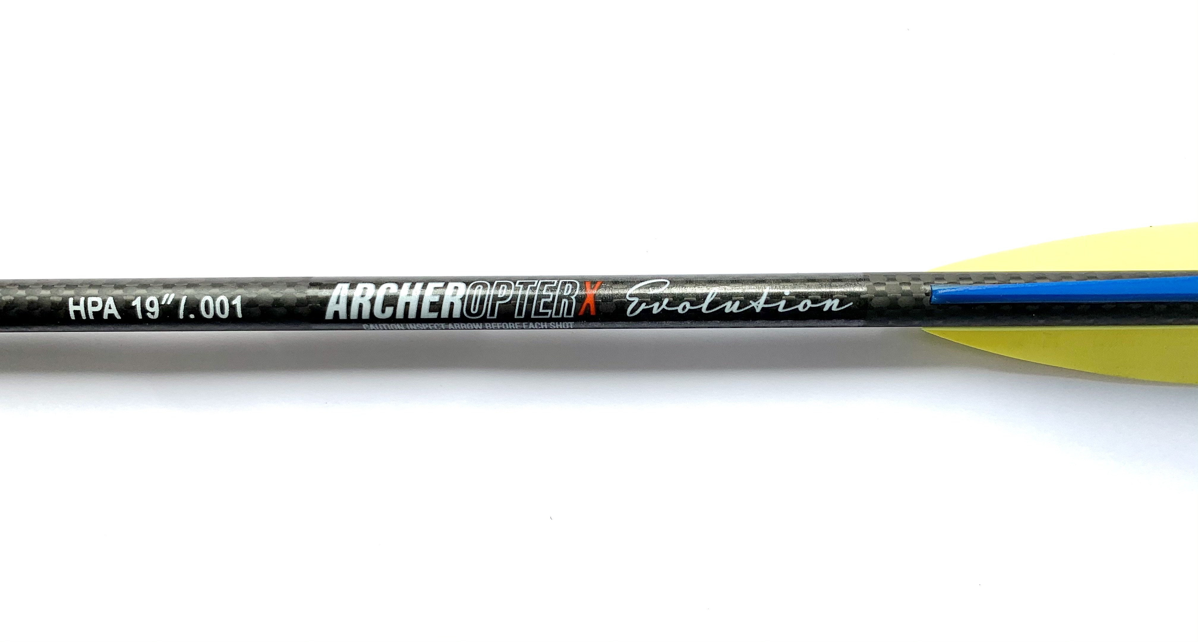 19 Zoll Carbonpfeil mit .001 straightness und mit 3.5 Zoll X-Vanes ArcherOpterX ist eine neue Pfeilsorte, die extra auf moderne und leistungsfähige Armbrüste zugeschnitten, eingestellt oder getunt werden kann. Die Evolution Serie unterscheidet sich in folgenden Punkten zu herkömmlichen Carbonpfeilen: Zum einen ergibt sich ein leichteres Herausziehen aus der Zielscheibe, zum anderen wurde die Carbon-Struktur verändert. Im Falle der Zerstörung ist eine längliche Splitterbildung in Pinselform deutlich unwahrscheinlicher. Verglichen werden kann dies mit einer Autoscheibe, die anstelle in große und gefährliche in viele kleine und ungefährliche Stücke splittert. Bitte fügen Sie bei Bedarf Ihre passende TopHat-Spitze zum Warenkorb hinzu. Sollten Sie sich beim Pfeilgewicht unsicher sein, teilen Sie uns das einfach im Kommentarfeld mit. Der Halbmondnock ist ebenfalls enthalten. Eventuelle Leuchtmittel (sofern abgebildet) sind nicht inbegriffen, können bei uns allerdings separat erworben werden. Die Schaftstärke bzw. der Durchmesser erlaubt die Verwendung yon z.B. Endnocken der unterschiedlichsten Armbrüste. Die Geradheit (Straightness .001) von 1/1000 Zoll, die Verwendung von exakten Messinginserten und die Kombination mit der momentan besten Übungsspitze (TopHat), machen den Pfeil überragend. Nicht originale Pfeile, die für die Mission verwendet werden, sollten wichtige Kriterien erfüllen (Passform der Vanes und Schaftbeschaffenheit vorausgesetzt). Der Halbmondnock muss an den Seiten abgeflacht sein, da sonst Probleme mit der Schlosskralle + Nocken entstehen können und der Pfeil nicht ordnungsgemäß "losgelassen" wird. Siehe Bild in der Übersicht.