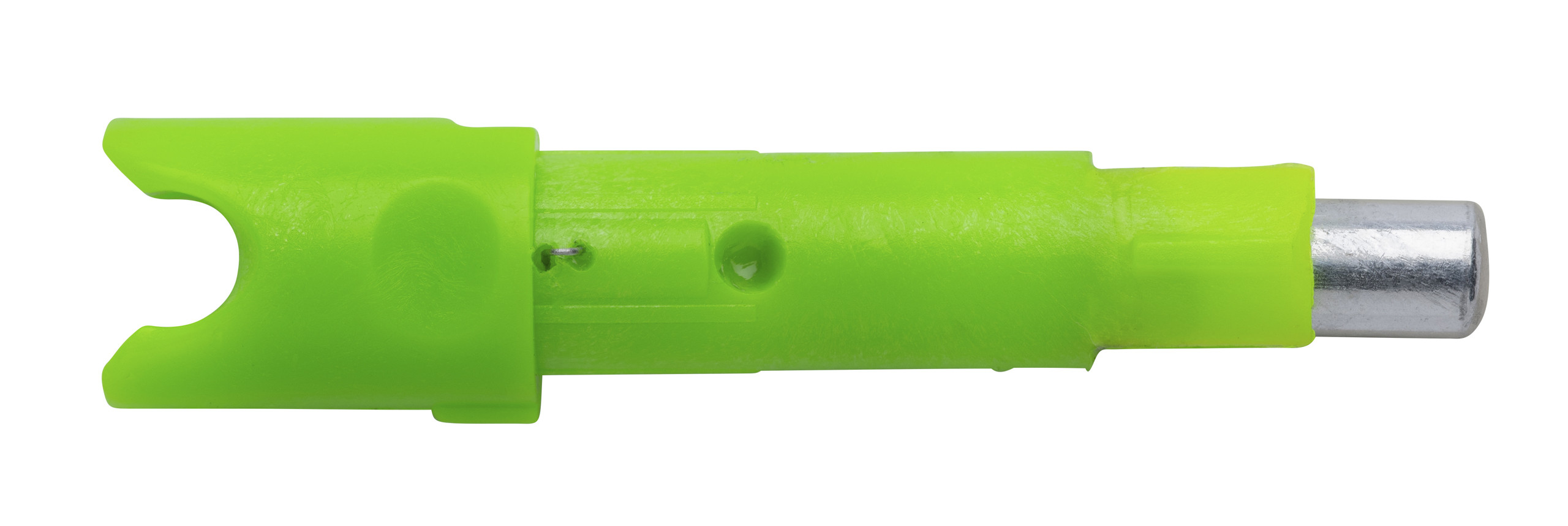 Der ACU-X Snap-On Leuchtnocken enthält eine Nocken/LED-Einheit, die mit den Vanes ausgerichtet ist und in das Alu-Bushing des Pfeils passt. Bei der Pfeilabgabe aktiviert die Bogensehne die den Leuchtnocken. Deaktivieren Sie den einfach ein-/ausschaltbaren ACU-X Snap-On Nock, indem Sie den Nocken gerade herausziehen, bis das Licht erlischt. Der Bednar Perfect Puller 2.0 macht die Deaktivierung des Leuchtnockens einfacher.