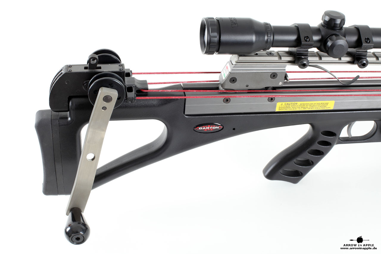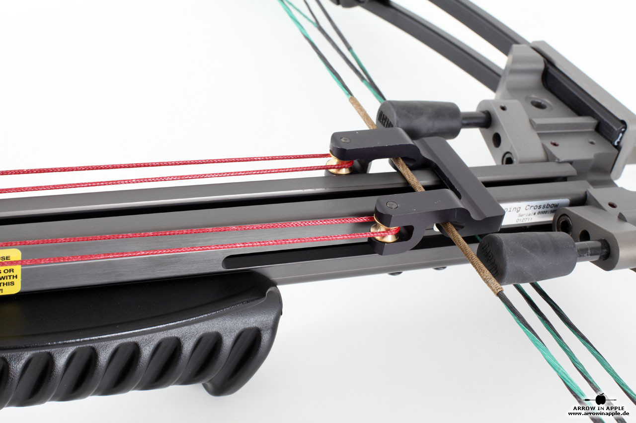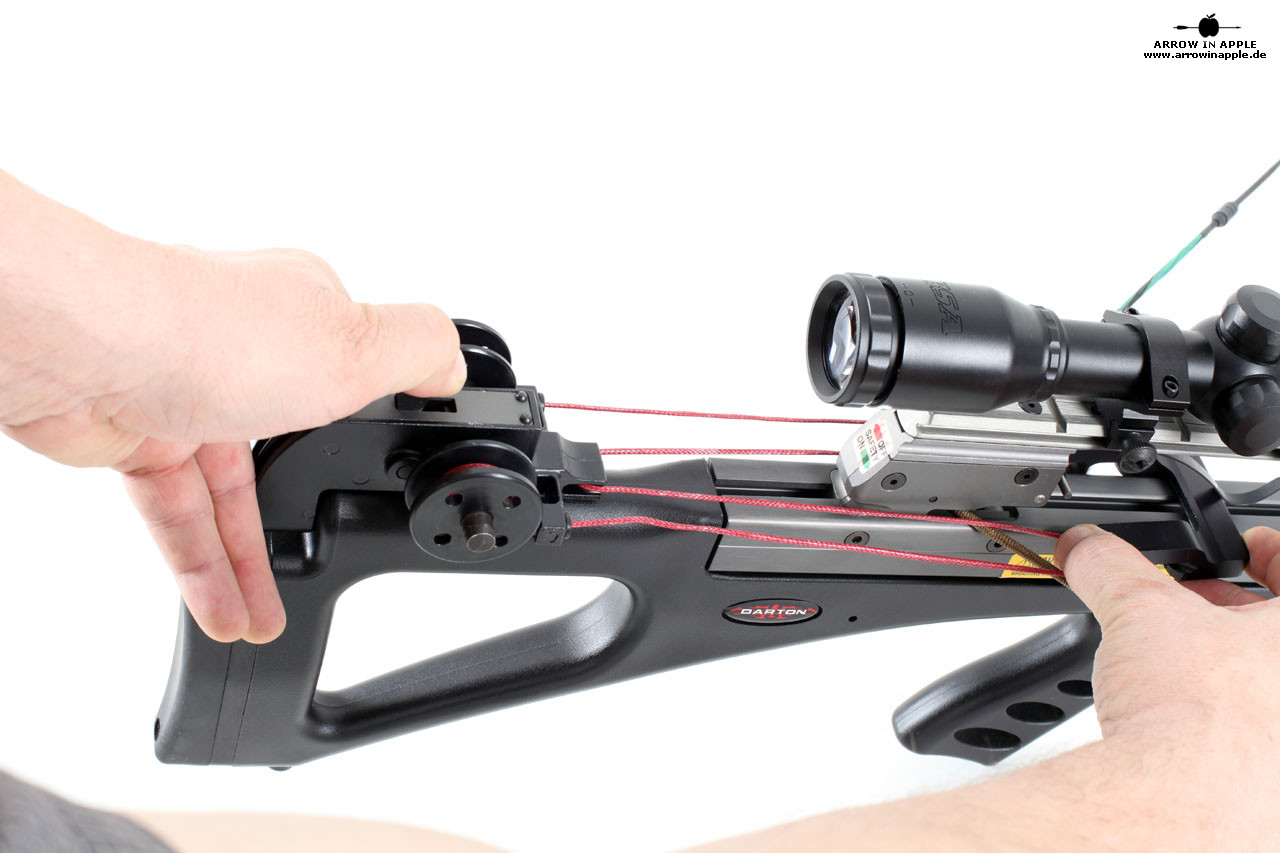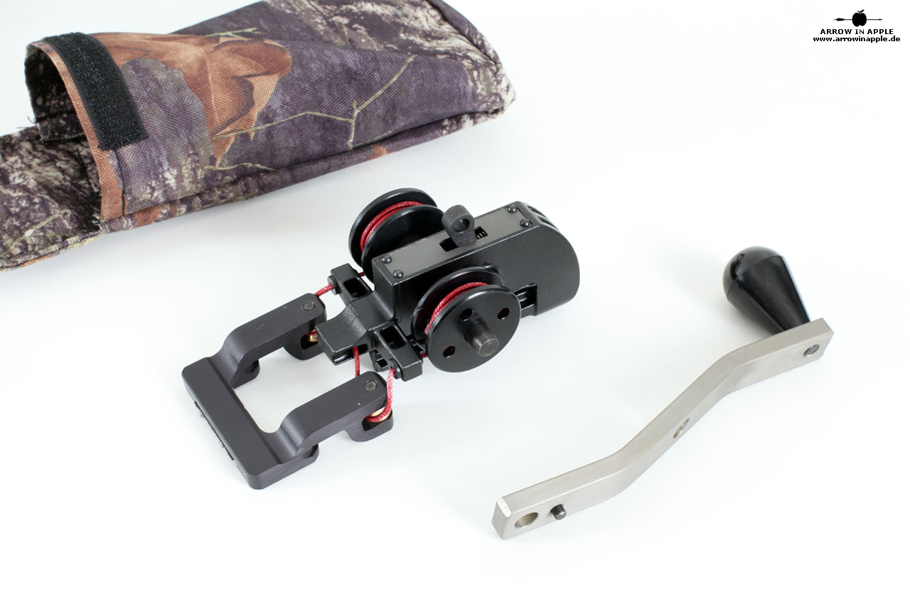 Zum leichten Spannen der Armbrust ohne Verwendung des Fußbügels, also besonders auch in Sitzposition.