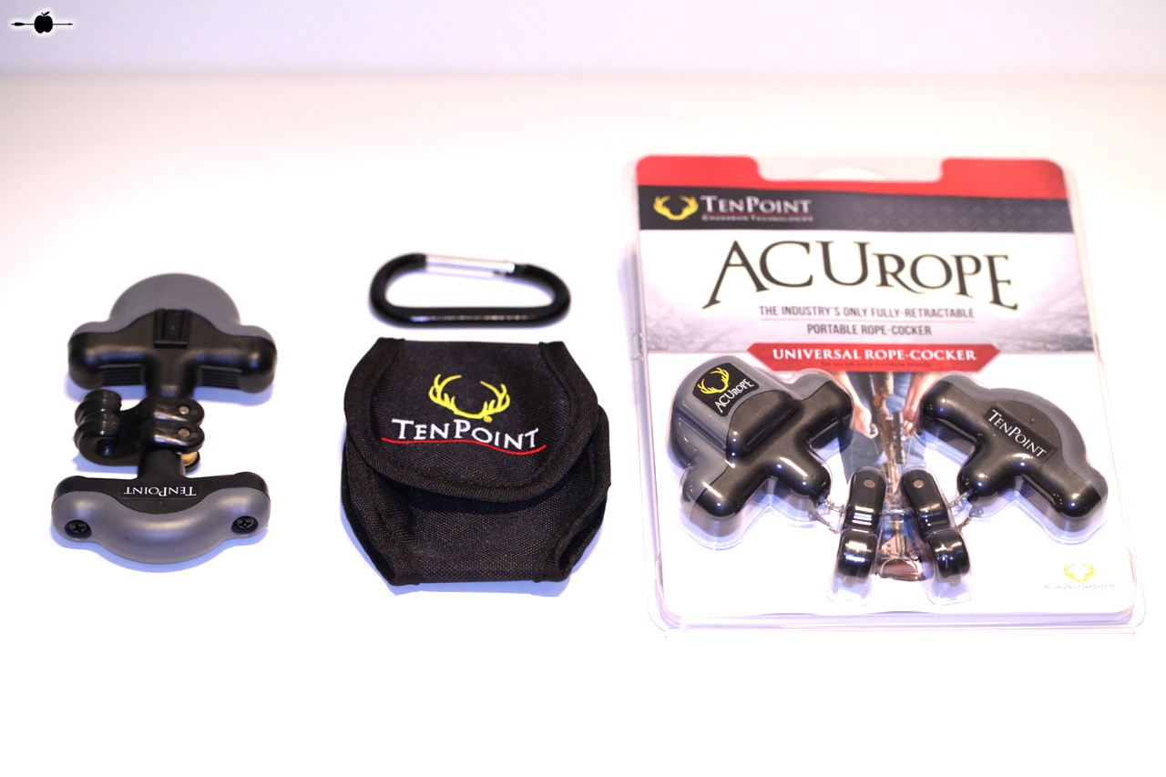 Universelle Seilspannhilfe für unterschiedliche Armbrustmarken. Das Spannseil wird nach dem Aufziehen der Armbrust automatisch von einer Feder im Griff der Spannhilfe zurückgezogen und kann daher kompakt und schnell verstaut werden. Tasche für den Transport am Gürtel oder in Kombination mit einen ebenfalls inklusiven Karabinerhaken sind dabei.